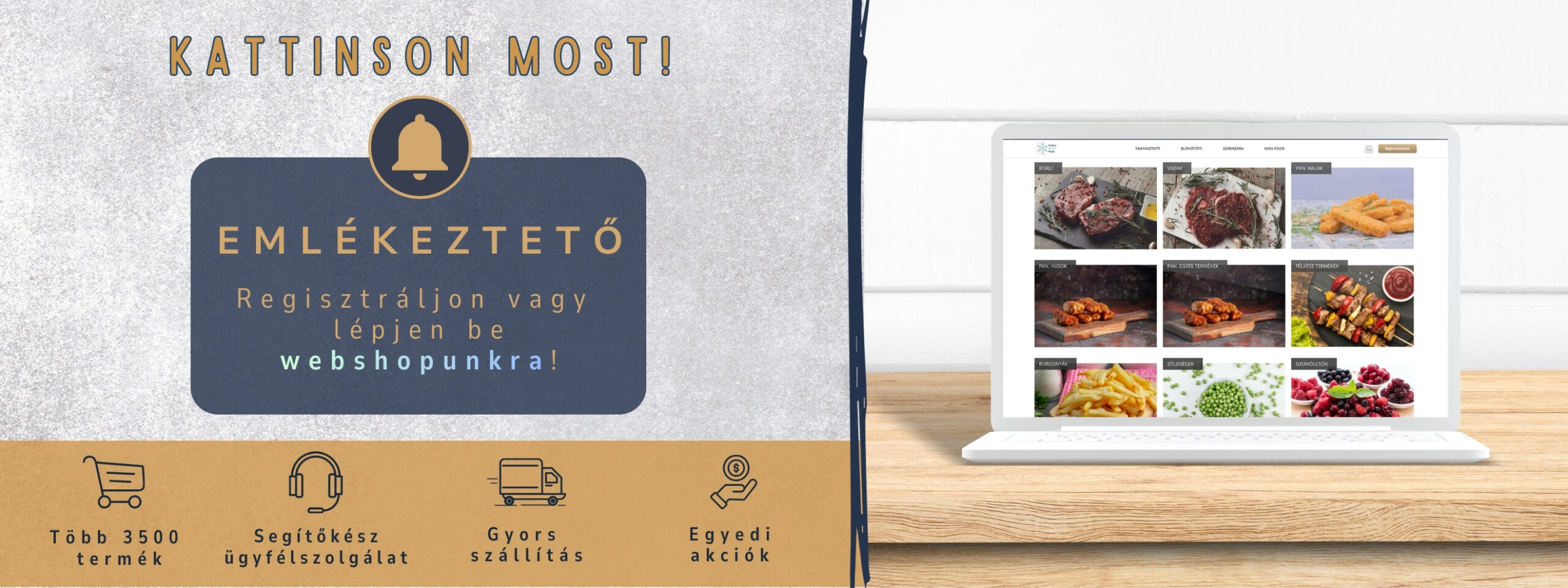 Folyamatosan szélesedő szortimenttel országos lefedettséget biztosítunk partnereinknek. Kínálatunkban országszerte megtalálhatók a mirelit áruk, friss halak, friss húsok, prémium marha termékek, tejtermékek, töltelékáruk, szárazáru és non-food termékek egyaránt.